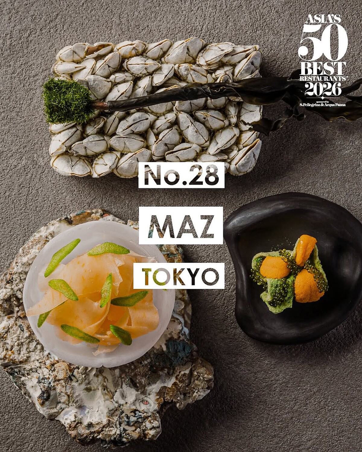 東京今年共有7間餐廳入榜,其中入榜常勝軍「Sézanne」(No.16)原由主廚 Daniel Calvert 掌舵,並已於2026年3月離任,現由 Stephen Lancaster 接任。其他入榜餐廳包括「茶禪華」(No.21)、「Maz」(No.28)、「Florilège(No.31)、明寂(No.33)、Crony(No.34)與及向傳統鄉村「里山」(satoyama)料理致敬的「Narisawa」(No.37)。而,本2026年日本排名最高的餐廳為則由大阪的「La Cime」(No.13),並獲選為日本最佳餐廳。