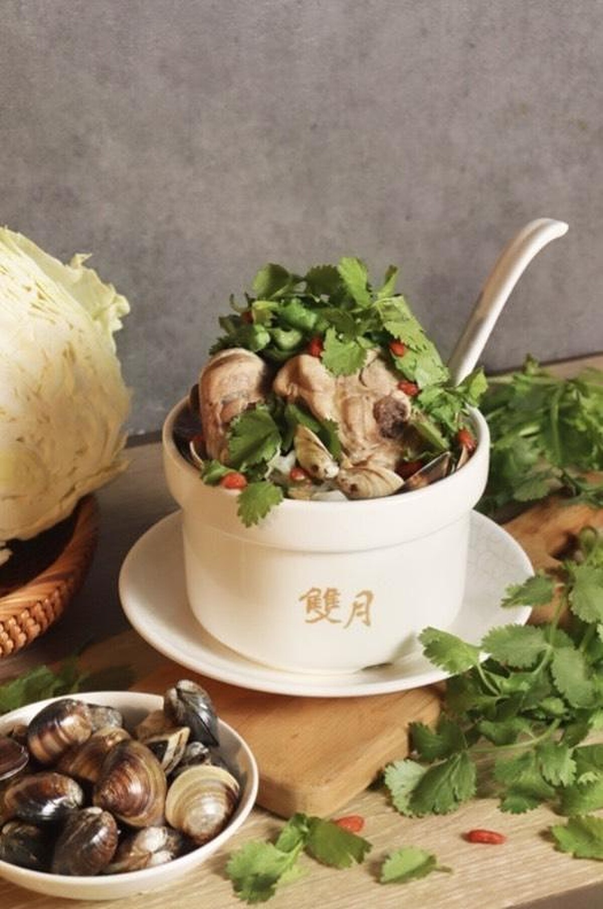 雙月並沒有把這次限定當作單純的惡搞,而是延續既有料理邏輯。蛤蜊雞湯原本的基底不變,透過反覆試味與比例調整,讓香菜的存在形成新的風味輪廓。