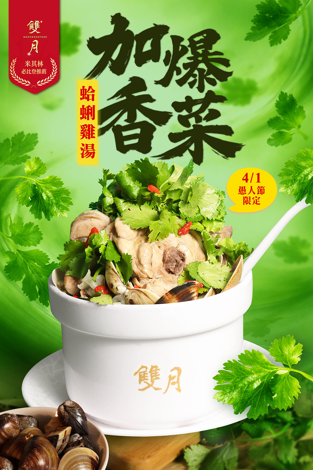 雙月將選擇權交給消費者,直接拋出提問,這碗湯究竟是令人上癮的清香,還是難以接受的極端組合,沒有標準答案,只有親自喝上一口才能決定自己站在哪一邊。「香菜加爆蛤蜊雞湯」將於4月1日限定販售,全台門市同步推出,機場店除外,數量有限,售完為止。