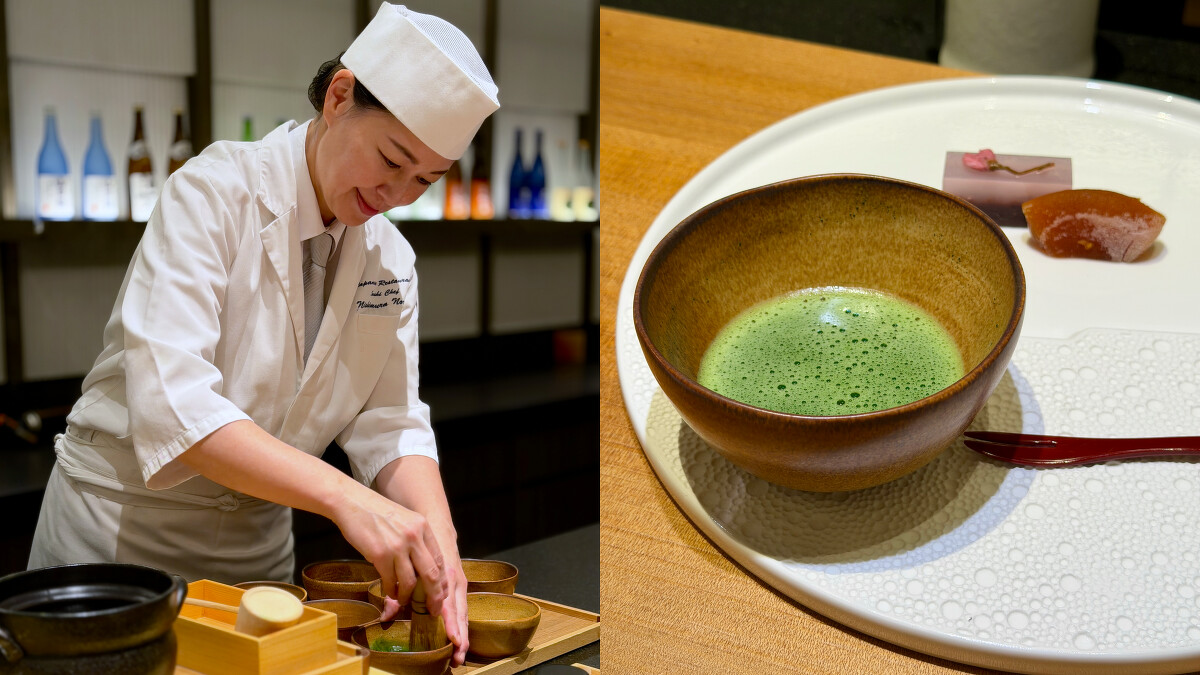 套餐尾聲,西村德子料理長特別準備象徵「圓滿」的麻糬搭配京都白味噌湯,將和諧美好的祝福傳遞給板前的各位。壓軸則是帶著愛製作的「手刷抹茶」,在她的記憶中,家人團聚時刻總少不了手刷抹茶,她將這項源自母親的技藝帶來台灣,分享如同「家」的溫暖滋味,為春季套餐劃下完滿句點。