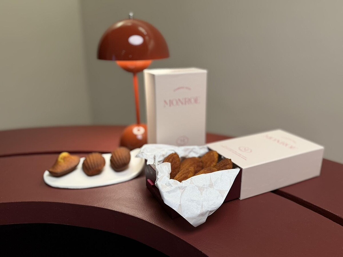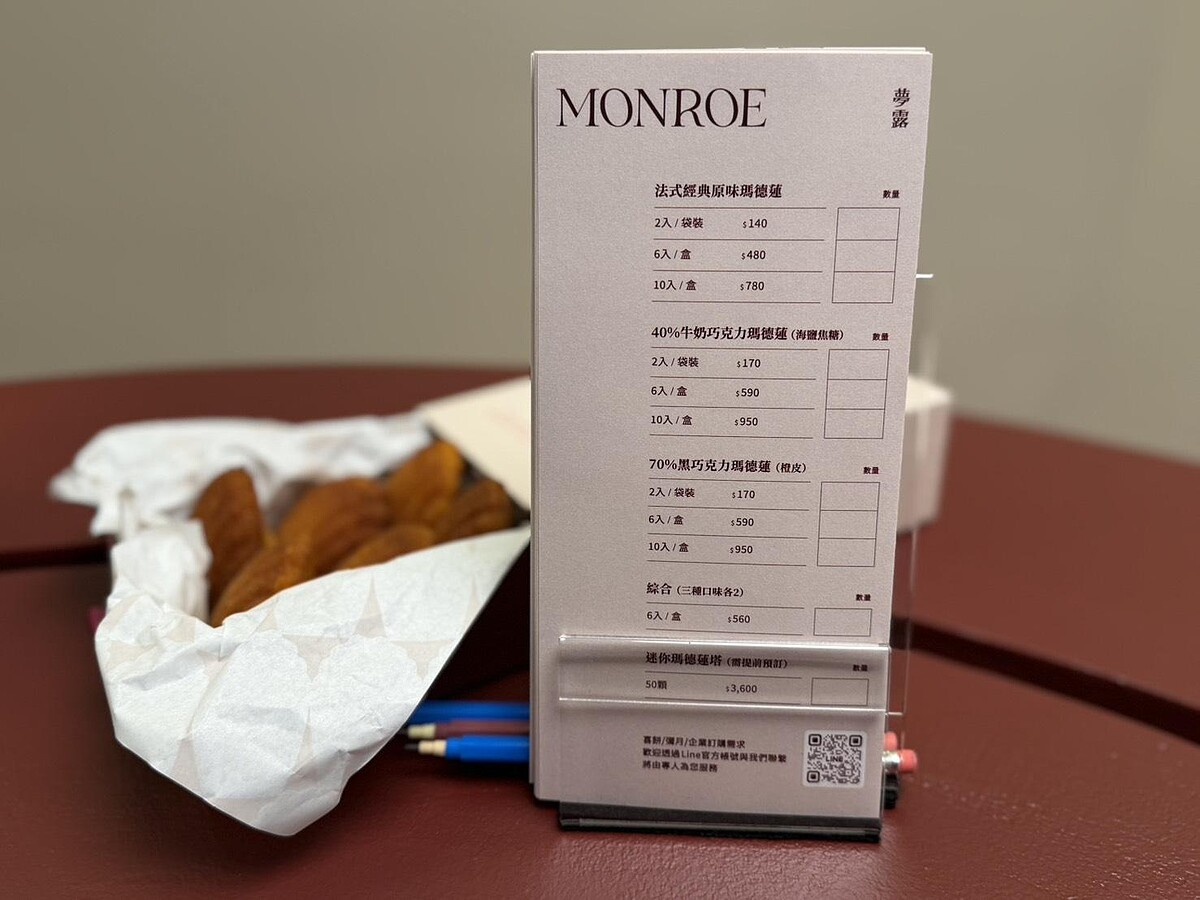 新品牌取名「夢露 Monroe」是向好萊塢傳奇女星瑪麗蓮夢露致敬,這個名字不只是簡單的致意,更是讓瑪德蓮多了一層更鮮明的個性想像。原本就帶著法式優雅的瑪德蓮,因為「夢露」這個名字忽然多了一點張揚與魅力。柔軟的蛋糕體、包裹著內餡的層次,入口時既溫柔又帶有記憶點,像甜點世界裡的光影變化。