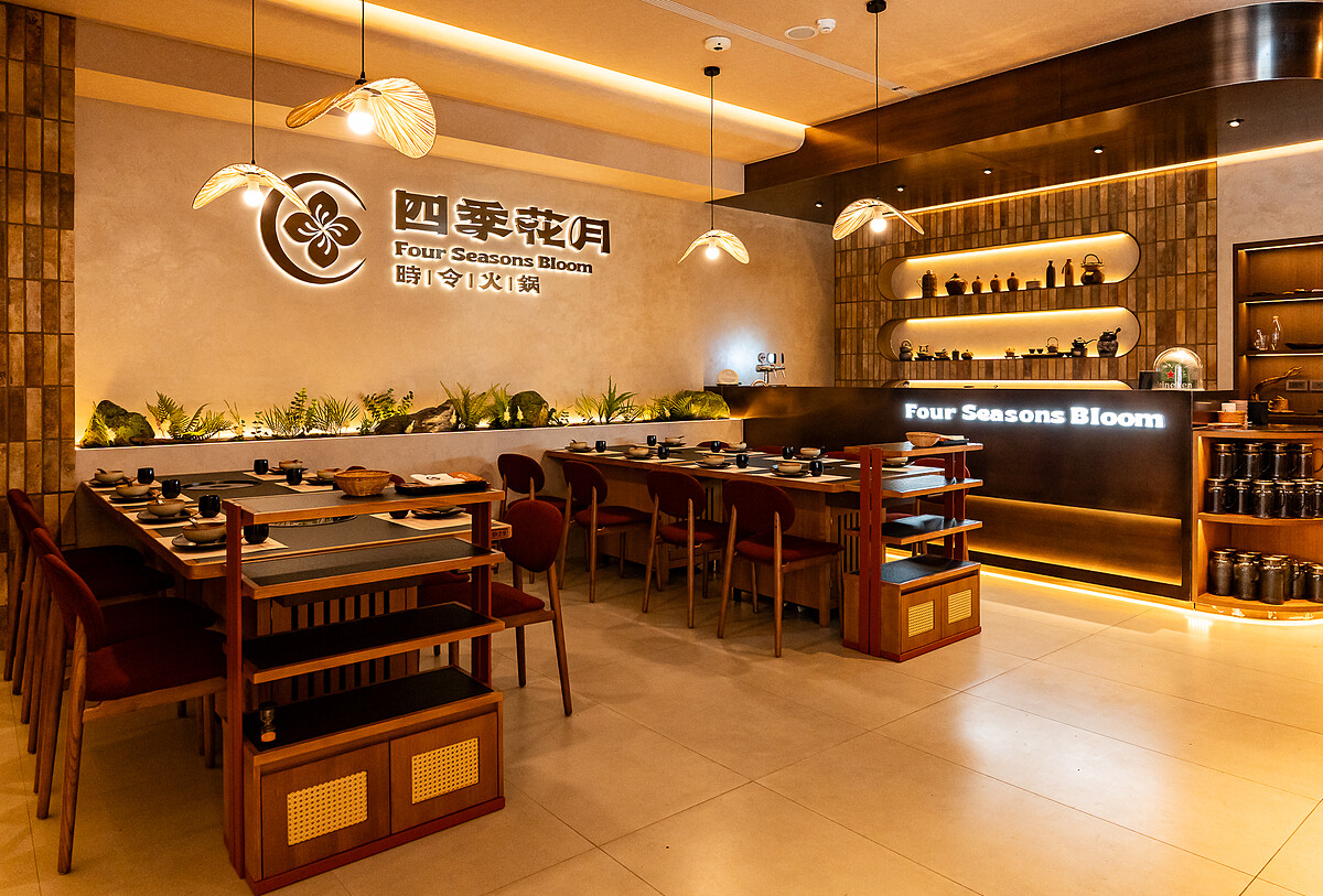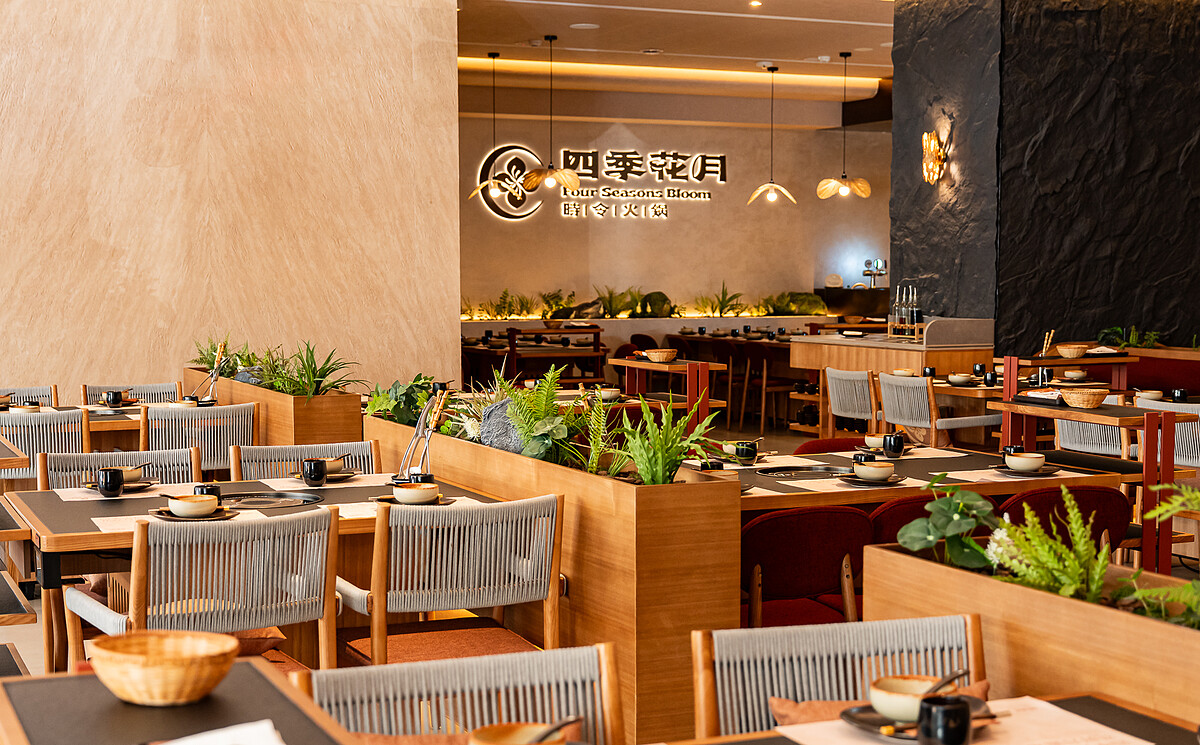 四季花月最先讓小編印象深刻的不是迎面而來的香氣,而是空間的寬敞和舒適度。店內大量使用土牆、原木與石材,搭配暖色燈光,整體風格不走浮誇型裝潢,而是偏安定、沉靜的路線。桌距刻意拉寬,視覺上不壓迫,也少了和隔壁桌互相干擾的侷促感。對忙了一整天、只想好好吃飯的人來說,這種不喧鬧、不打擾的環境確實比熱鬧更有吸引力。對此創辦人Kay分享火鍋本來就該是一頓能慢慢吃、慢慢聊,甚至安靜地吃完也不尷尬的晚餐,而不是被翻桌速度推著往前走。