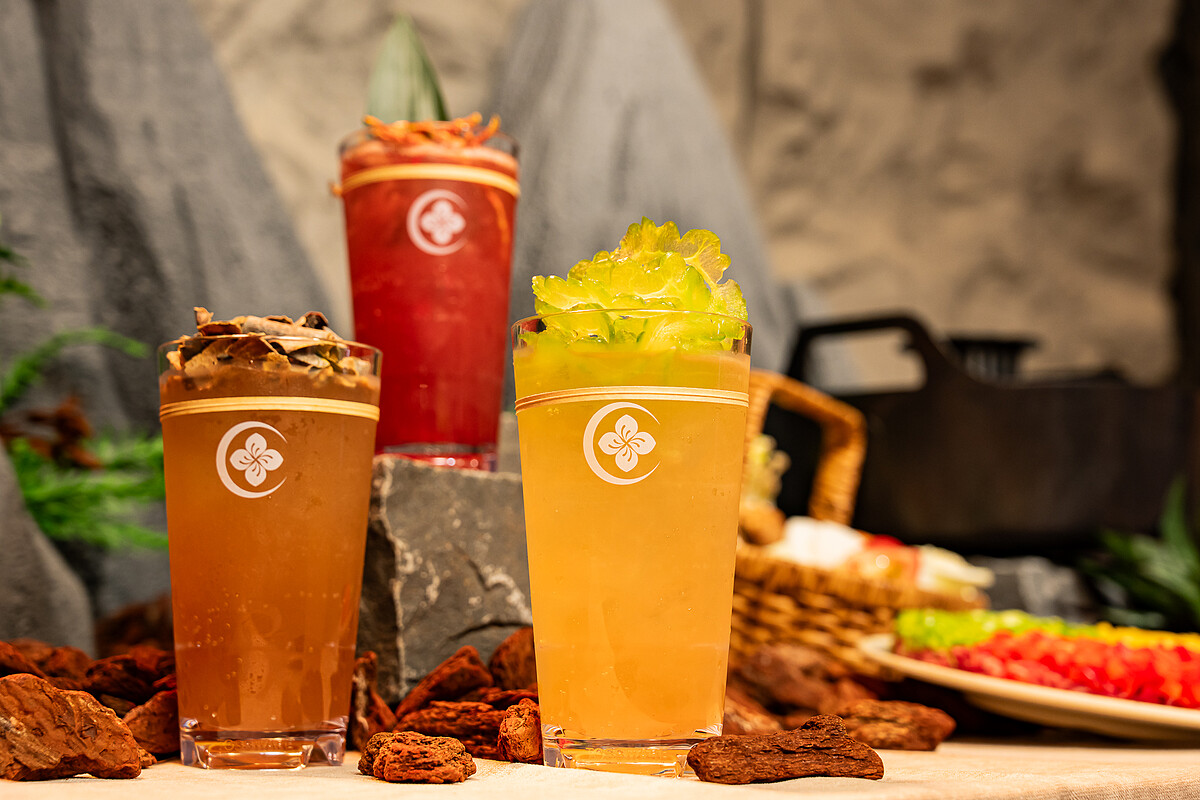 四季花月還替火鍋設計專屬的無酒精Mocktail,開幕先推出3款飲品,「春|青林梅影」以梅香為主調,酸甜清雅、「嶺上苦泉」以苦瓜做主角,風味帶點成熟的大人感,名字和外型都很有辨識度,光看就先降火氣、「霜瓜清露」走的是清甜路線,和麻辣鍋搭在一起很對拍,剛好能把口中的辛辣感往下壓一些。除了肉品以外,海鮮與配料選項也算齊全,海鮮有金目鱸魚、巴沙魚、干貝、大草蝦、廣島大牡蠣、澎湖小卷,另有蝦滑與花枝滑。喜歡丸類的人可以試試Q彈原味牛肉丸、蝦仁牛肉丸以及三星蔥爆漿貢丸、爆漿起司牛肉丸。至於蔬菜部分,品牌特別推薦口感爽脆的貢菜,剛好替整桌肉與濃湯拉出一點清口感。