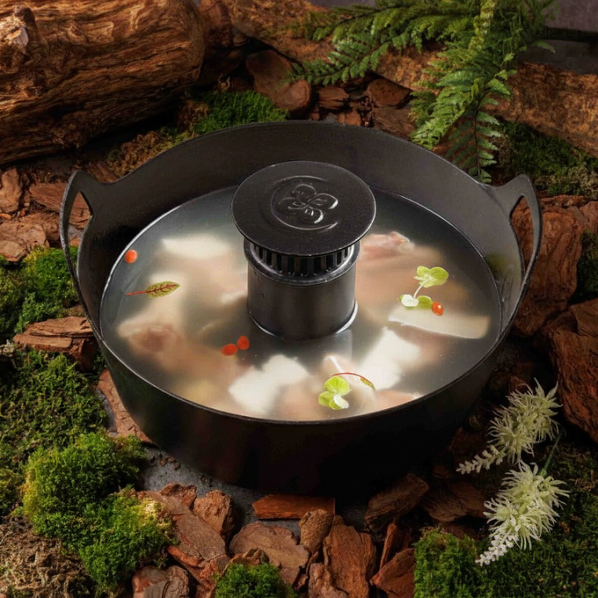 「四季花月」以隱於山野、盡享四季為概念,無論是空間還是菜單都圍繞山野感展開。創辦人Kay出生於香港、在美國長大,因為喜歡火鍋,也吃過各地不同風格的鍋物,最後選在台灣打造「四季花月」,把他心中理想的用餐狀態具體做出來。這裡沒有催促感,也不強調過度互動,而是一種終於能放鬆下來的舒服。餐廳也導入無煙淨化設備系統,即時吸附與過濾油煙,吃完鍋後衣服和頭髮不容易留下濃厚氣味,對不少下班直接來聚餐的火鍋控來說超級加分,如果是來約會也不怕吃完全身食物氣味重到不行。