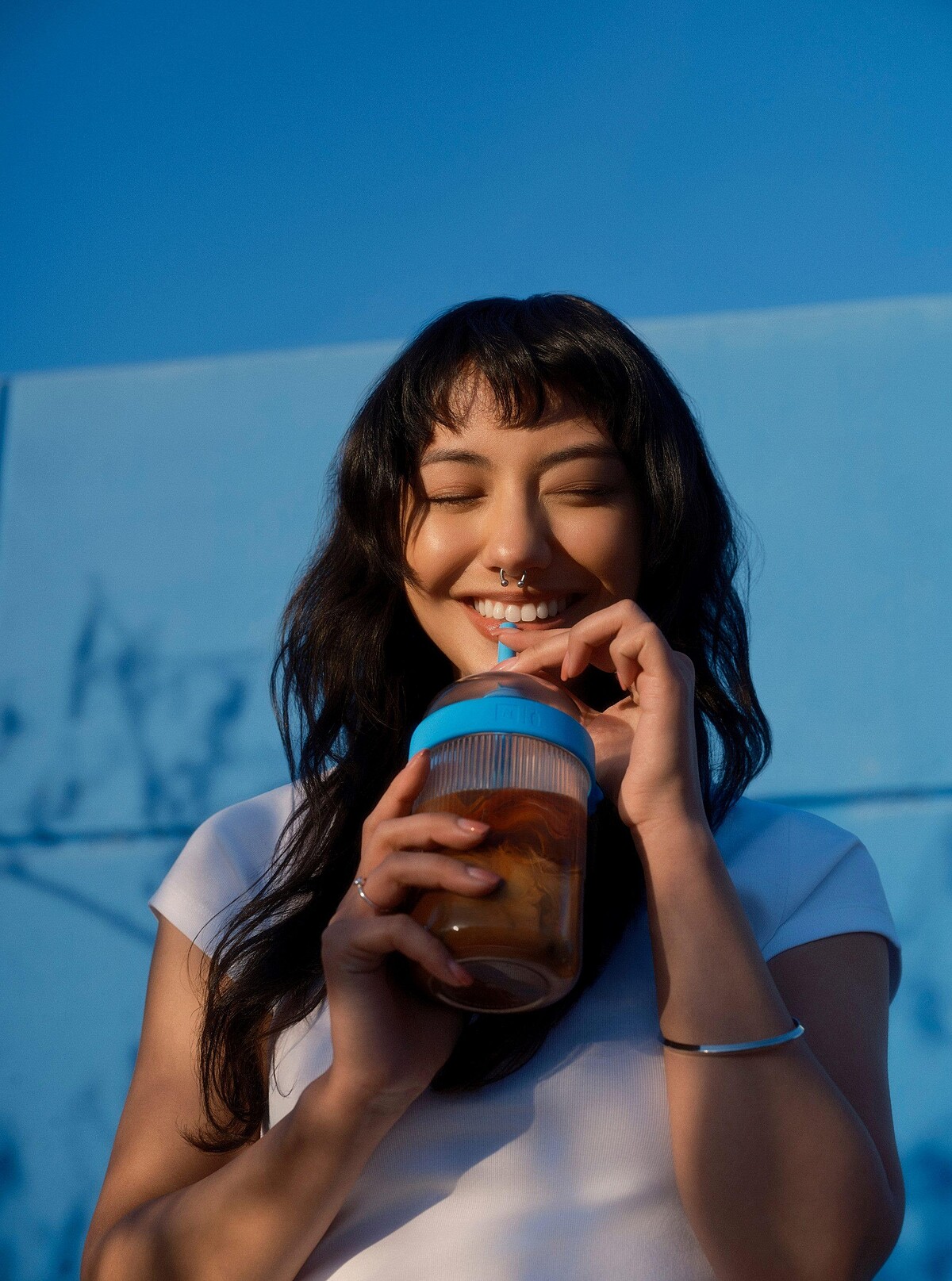 1.加滿冰塊、鮮奶或燕麥奶,經典NOLA冰咖啡,焦糖香跟穀物香超搭。