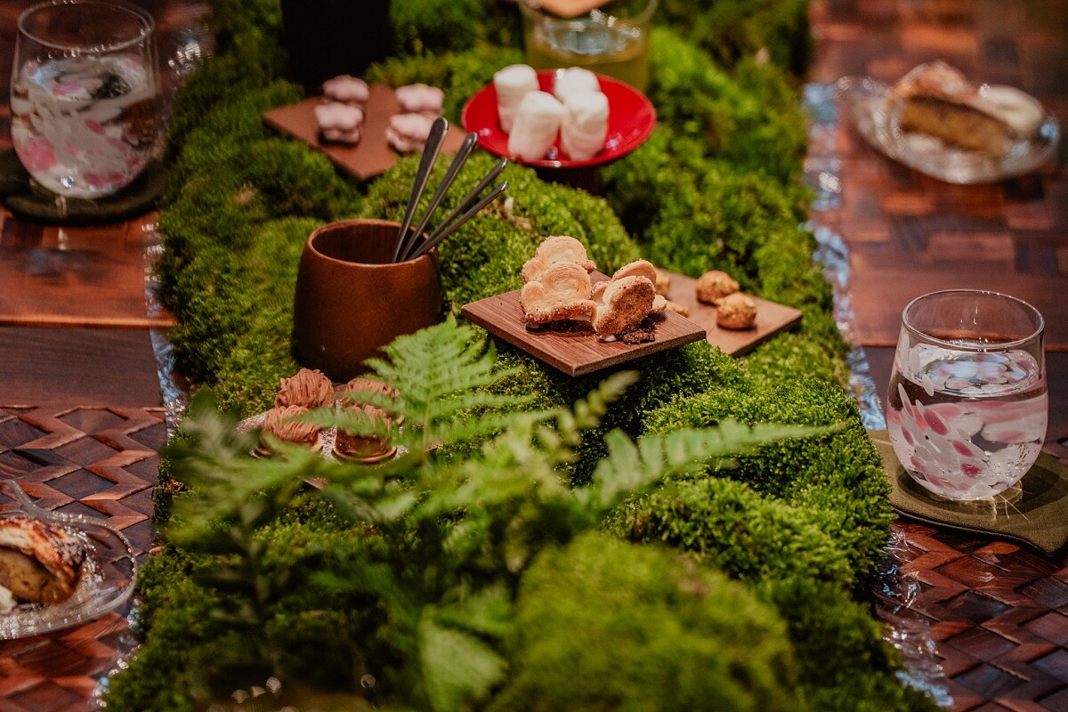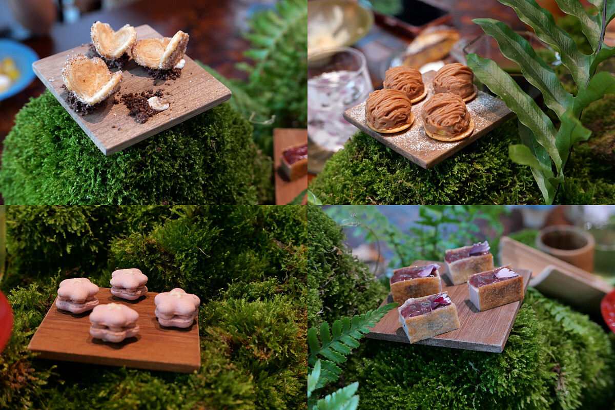 一旁搭配以四季為概念的茶點,從春天的梅子與櫻花、到不同季節的果香與堅果風味,透過輕重交錯的安排,成為餐會完整的收尾體驗。