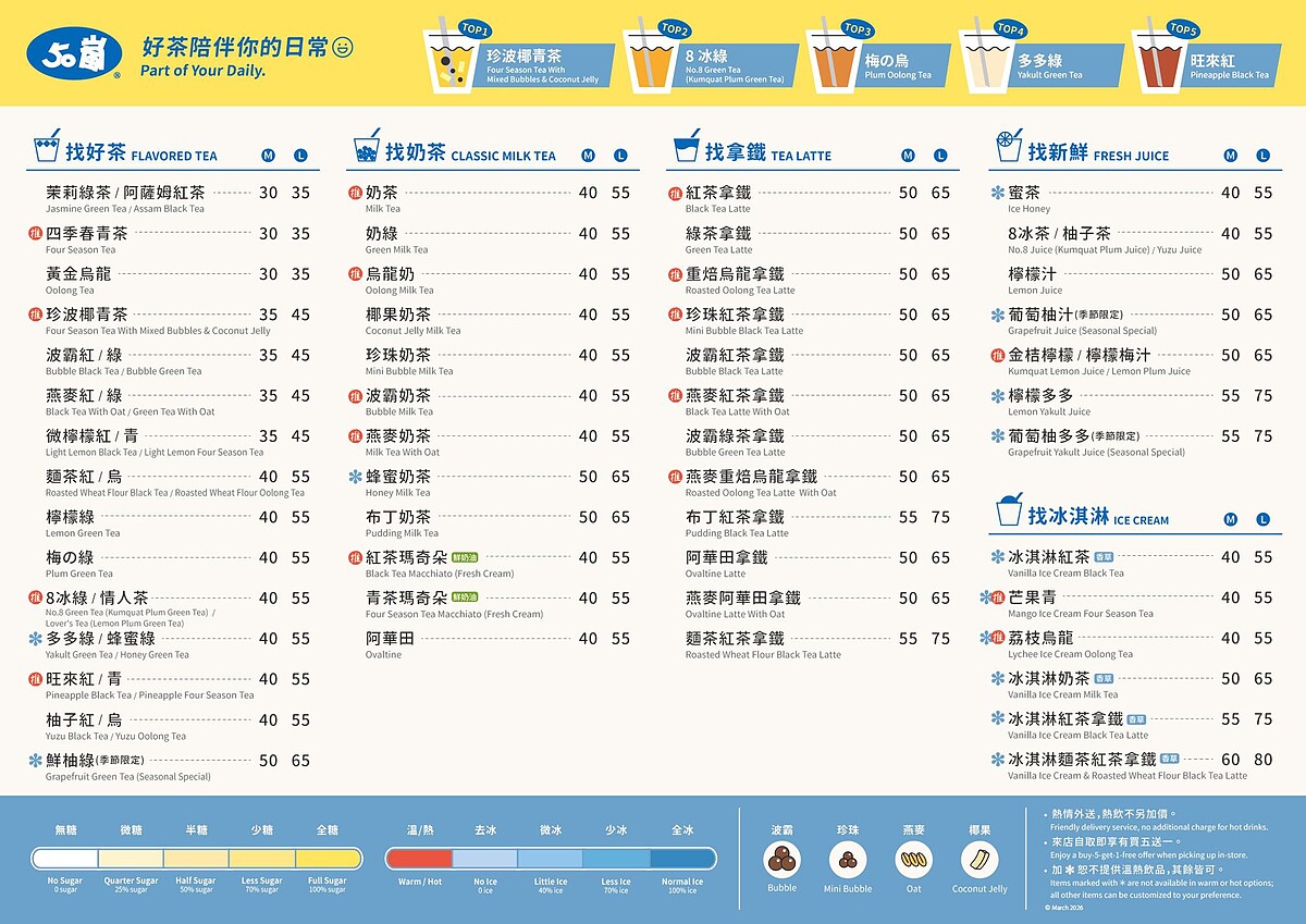 2026五十嵐必喝TOP4:四季奶青瑪奇朵