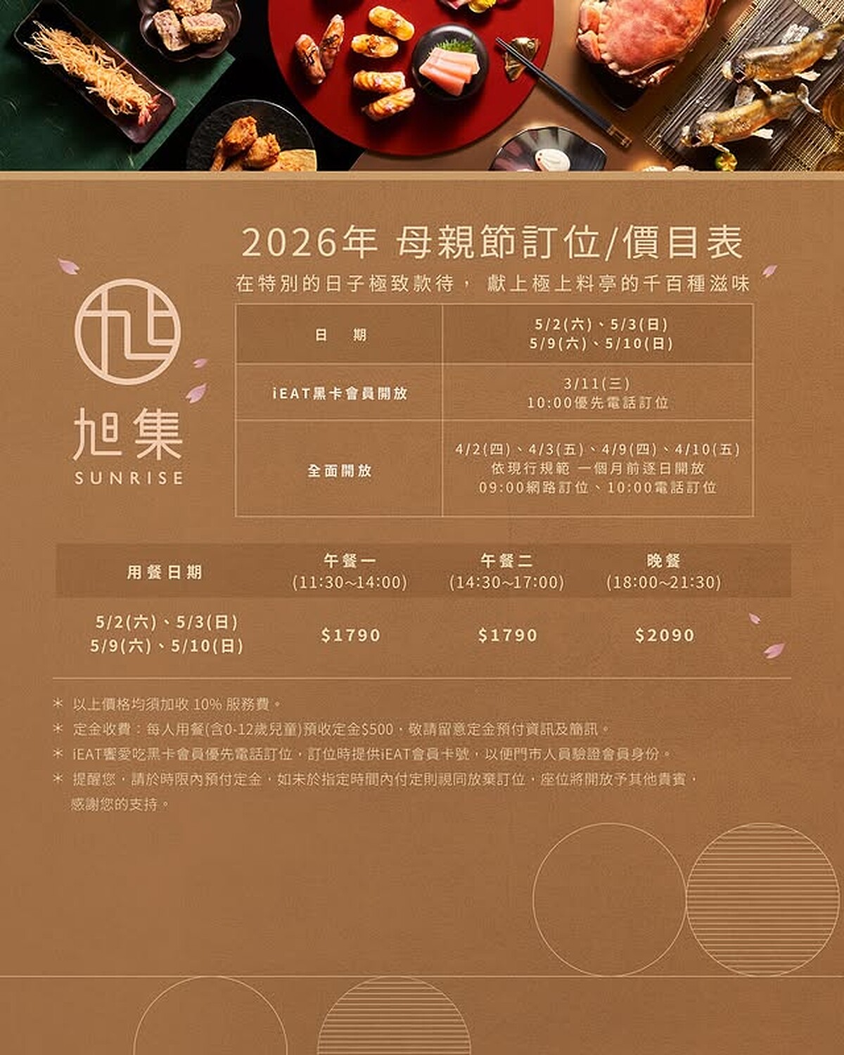 旭集2026年母親節訂位價目表