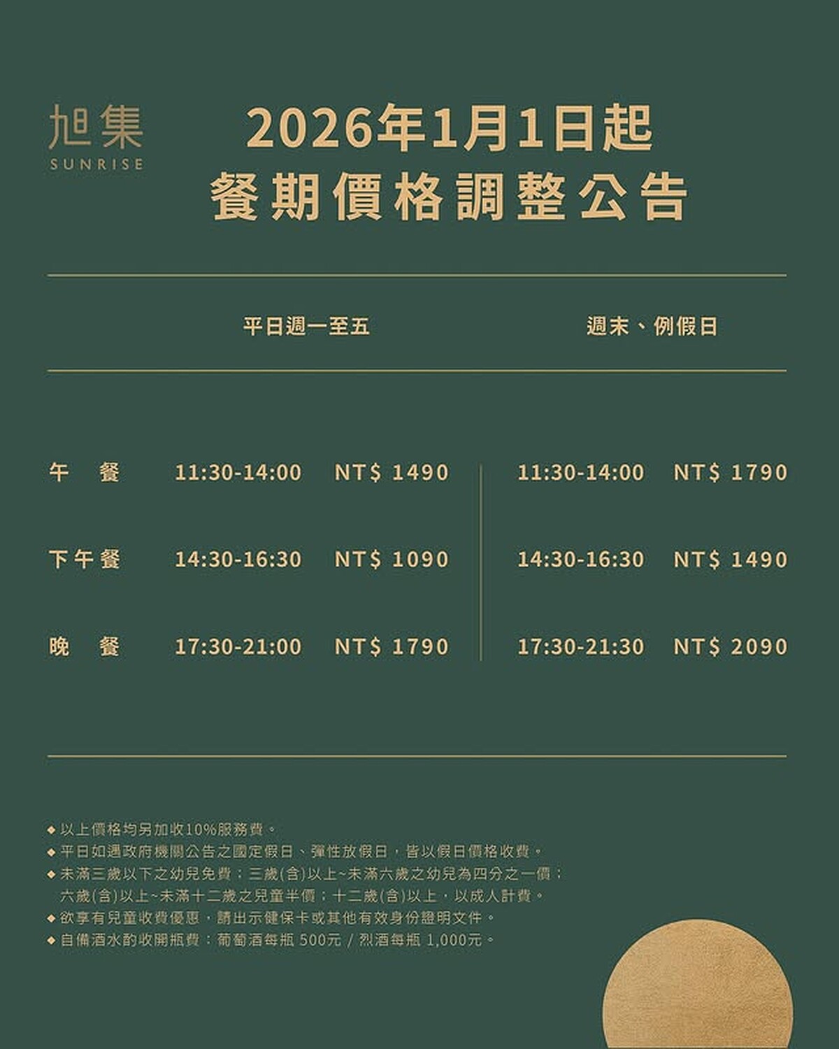 旭集2026年餐期價格