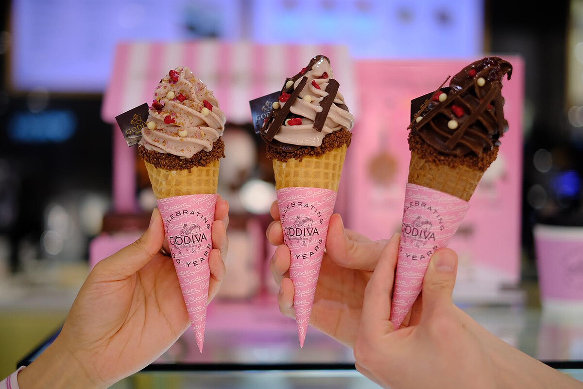 延續「百週年限定巧克力禮盒」的工藝靈感,GODIVA同步推出期間限定冰品與飲品系列,將深厚的巧克力底蘊轉化為輕盈且迷人的日常體驗。本系列以「紅莓玫瑰」為主軸,包裝設計承襲經典粉紅小貨車的浪漫視覺,完美平衡了巧克力的醇厚與清新果露的芬芳。全系列共推出4款奢華新作,包含由濃郁可可與酸甜果韻交織的「紅莓玫瑰雙重巧克力霜淇淋」、「紅莓玫瑰白巧克力霜淇淋」,以及在經典中注入花果層次的「黑巧克力霜淇淋(紅莓玫瑰點綴)」;若偏好滑順口感,更不能錯過「紅莓玫瑰白巧克力奶昔」,讓這份跨越世紀的甜蜜在舌尖優雅綻放,為百週年盛典畫下最沁涼的一筆。