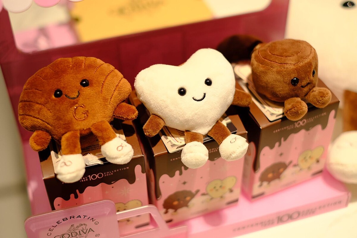 盒內三款經典巧克力化身限定盲盒吊飾,「白白」1945心形榛果蓉白巧克力、「貝貝」2008貝殼形杏仁黑巧克力、「莓莓」2016玫瑰味紅莓黑巧克力,可愛又值得收藏,單筆消費滿NT$2,500即可獲得「百周年巧克力絨毛吊飾盲盒」一個!同時品牌還有16張LINE 百周年限定貼圖,以及以玫瑰紅莓黑巧克力為靈感推出的期間限定冰品與飲品系列,讓慶典從舌尖延伸到日常。