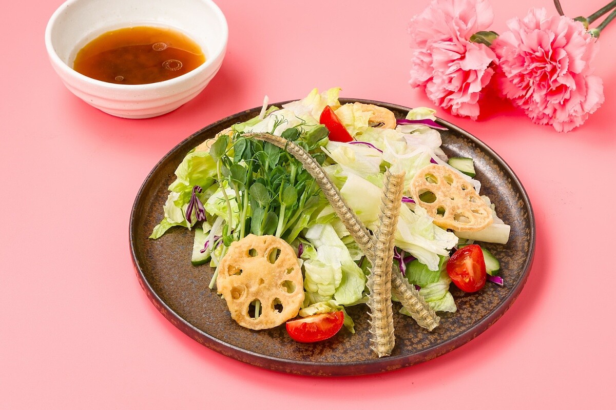 單點部分,首推「鰻骨柚香蓮藕沙拉」,以新鮮生菜為底,點綴酥炸蓮藕片與每日限量的鰻骨仙貝,搭配特製柚子醬,酸甜與鹹香交疊,口感層次豐富。飲品則有「沁馨柚香烏龍」,以臺灣烏龍茶的清香調和和風柚子醬,適合搭配整套餐點,消解暑氣。母親節限定柚香系列自4月29日起 於全臺各分店同步開賣。