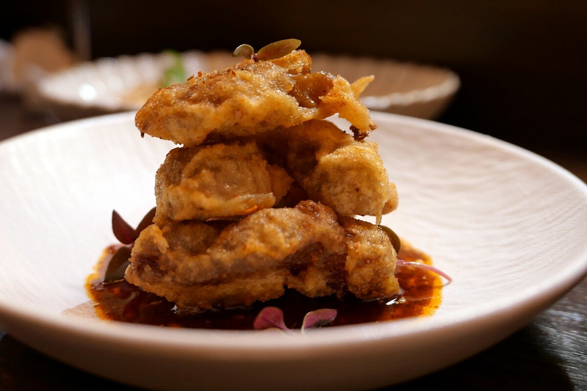 店名「倉廩」展現了不一樣的,來自先秦典籍《管子》裡的:「倉廩實則知禮節,衣食足則知榮辱」,用糧倉作比,傳達吃飽、吃好、感覺舒適的核心精神。餐廳創辦人、研發主廚陳秋強( John)想開的是「自己也會走進去吃」的餐廳,「小吃」則是對輕鬆氛圍的期待,在「倉廩 」是兩件事可以同時不是需要準備才能進門的地方。空間帶一點餐酒館的沉穩,但門檻不高,就算一個人坐在吧檯前也不尷尬,兩三個朋友小聚聊到忘記時間也沒人催。他們稱自己為精緻小吃部,「精緻」來自對菜的要成立的烏托邦。