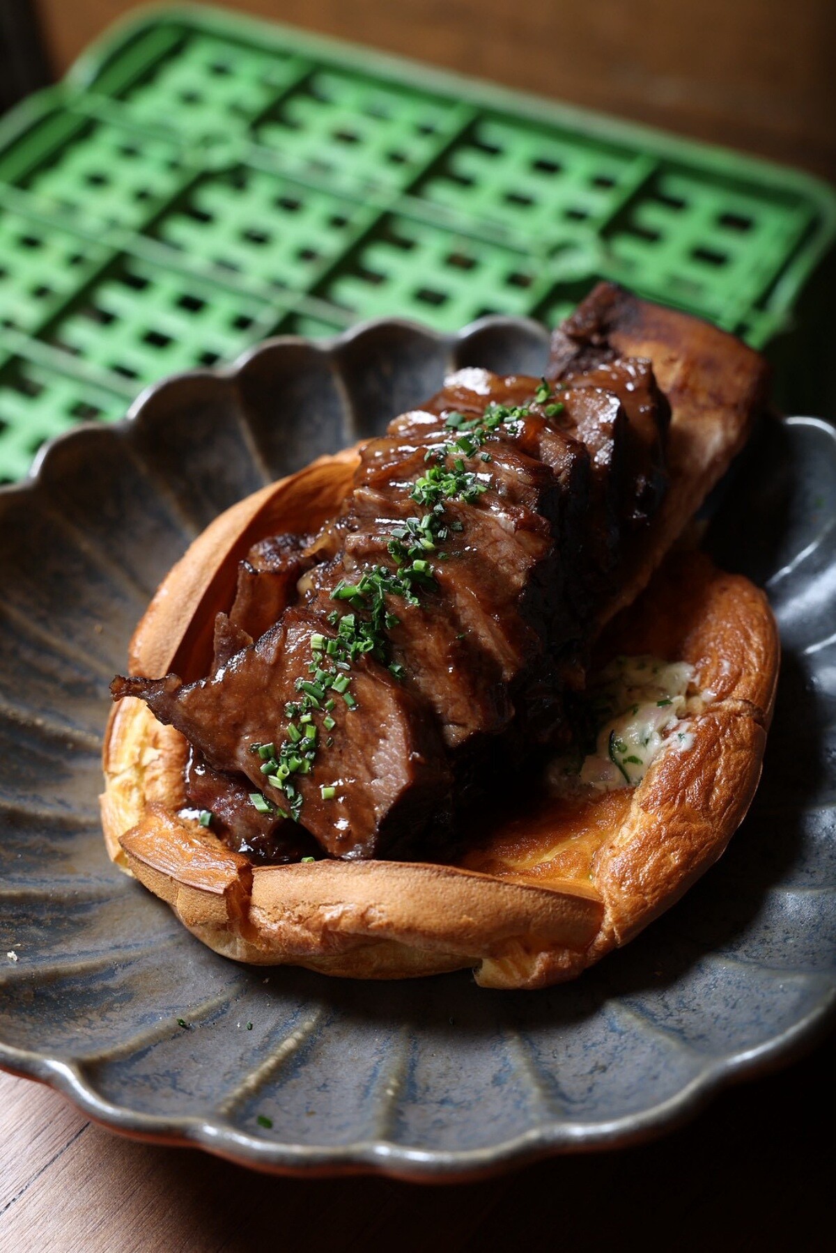 倉餅系列裡最頂級的慢烤牛小排,以加入味噌的牛肉醬汁長時間燉煮帶骨牛小排,頂層的香料奶油隨著熱度融化於牛肉表層,大塊飽足的牛肉滋味鹹香,口感軟嫩,尤其帶有筋膜的部位口感柔滑,吸附牛小排精華的倉餅更是美味。( NT820元)