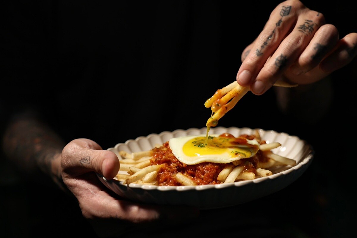 翻玩肉醬蛋吐司的薯條版本,以加入紅酒燉煮的肉醬展現早餐店裡少見的醇厚滋味。金黃薯條沾上肉醬,再與靈魂精華的太陽蛋搭配,雙重濃稠的蛋香與肉香,是從白天到晚上都屬於高人氣的一品。(NT180元)