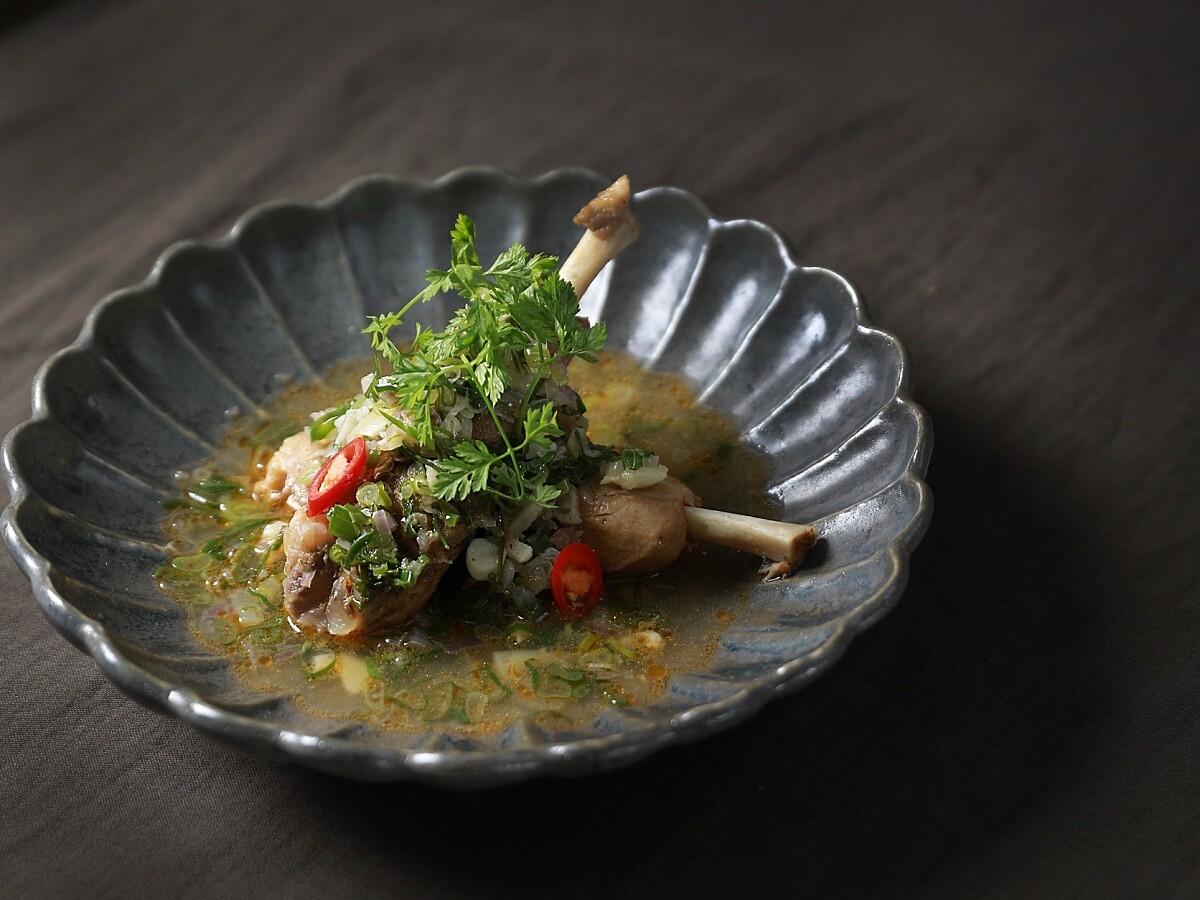 豬腱肉是較精瘦,能展現肉香部位。研發主廚將此部位長時醃漬與蒸烤,只需輕輕一撥,骨肉即可分離,肉質軟嫩、香氣濃厚且深層入味。(NT240)
