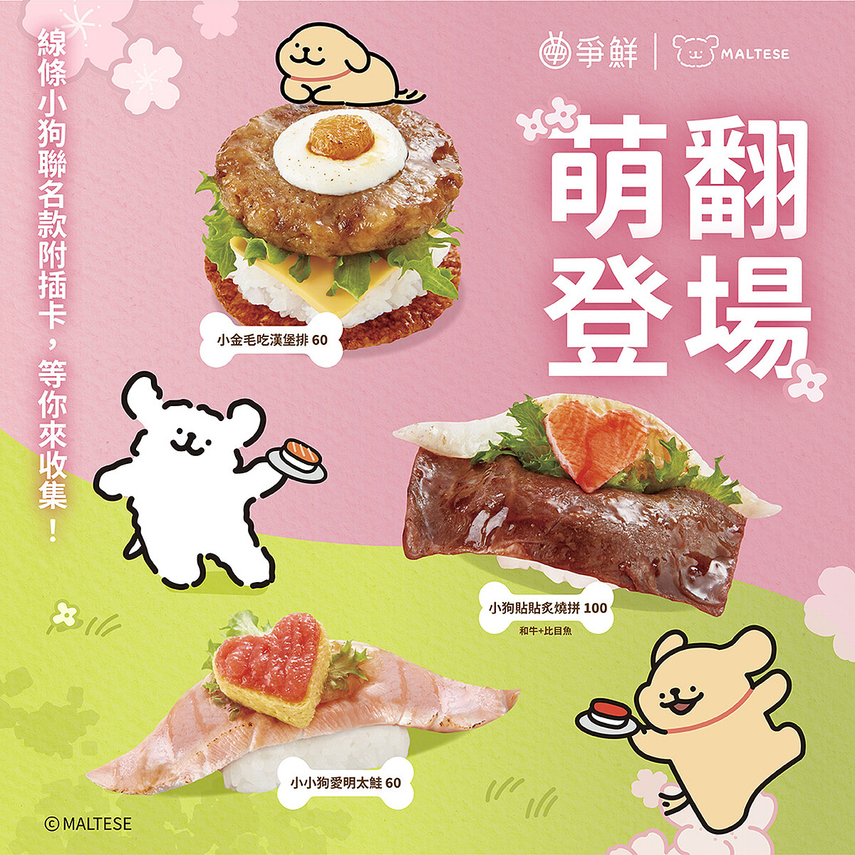 爭鮮與爭鮮PLUS門市同步推出3款限定餐點,每道皆附贈「線條小狗限定插卡」: