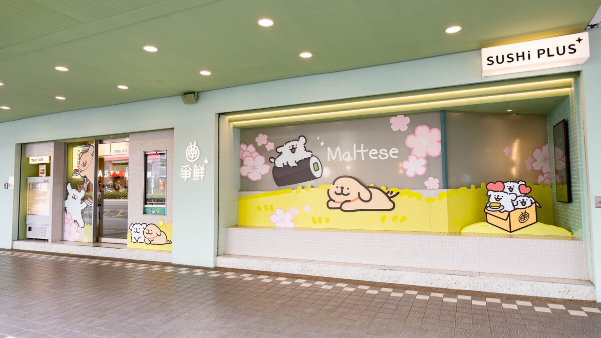 為了讓粉絲完整體驗線條小狗的魅力,爭鮮特別精選全台8間門市打造期間限定聯名主題店。從店門口的大型視覺造景、牆面掛畫到用餐區的桌面設計,全面換上線條小狗的可愛身影: