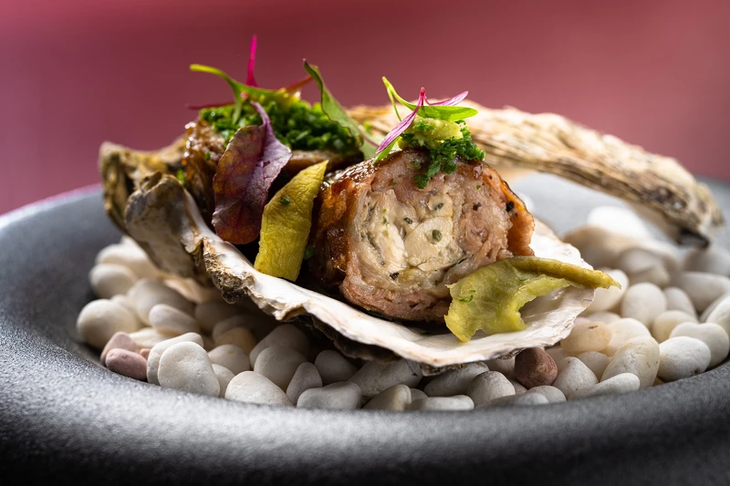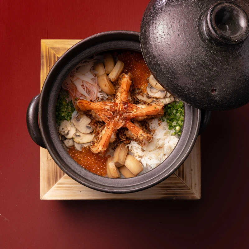 在這裡,「輪輪1976」以懷石料理作為核心主軸,推出一系列跨界和洋食,包括日式冷菜「海鮮酪梨塔最中寶盒」宛如日式風格新式漢堡;義式與日式結合的特製「炭火西西里豚肉串焼」,清新檸檬沾上特製的義式西西里咖啡粉;還有翻玩歐洲宮廷甜點的「松葉蟹肉塔」,以及蝦控必點的「1976蝦蝦土鍋炊飯」。
