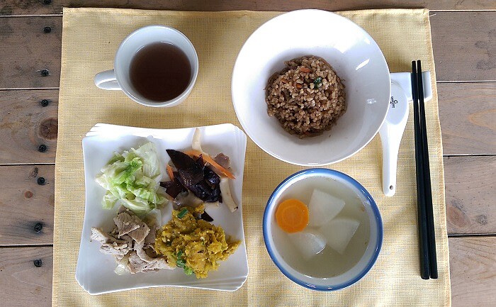 (紅藜飯好食,大愛綿密的南瓜,時令蘿蔔湯不僅鮮甜還透露淡淡的柴燒香氣,飯後來杯蓮藕茶更是清爽幸福。)