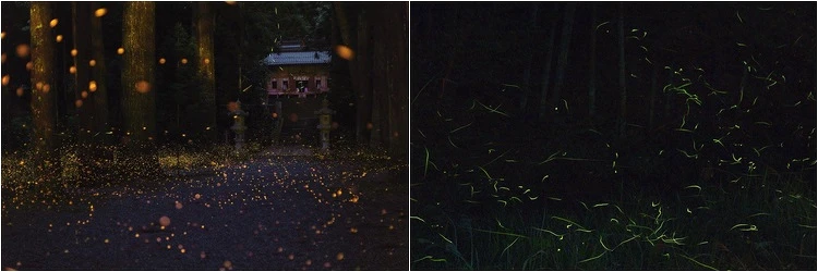 位於岐阜縣揖斐川町的古汲村橫藏地區和飛鳥川一帶,可看到奇幻的綠光小徑,詩般的螢火蟲乘著夏風拂過草地,讓人如癡如醉,其他北部地區的反原川、桂川、賀茂神社附近,和上野的揖斐川鄉野也都是觀賞的好地點。