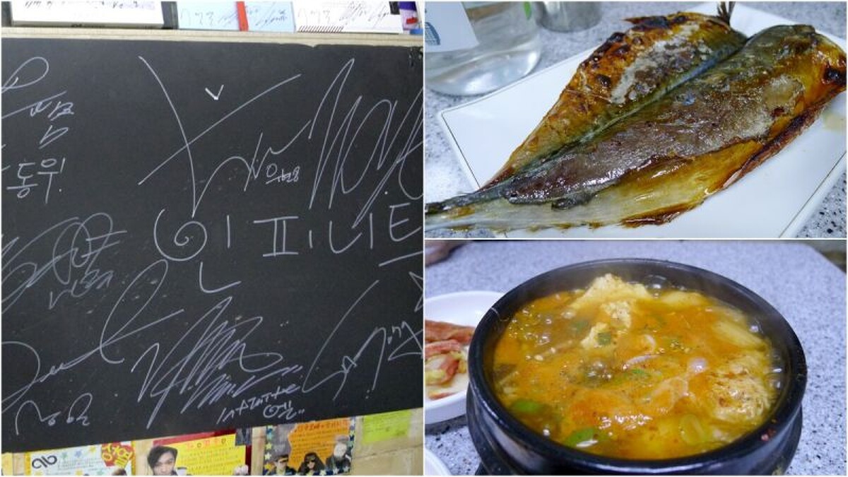 這間來自日本的拉麵店,一間店只擠得下十來個人,但美味又道地,連日本人都讚譽有加,也在首爾陸續開了多間分店。而新論峴店占了地利之便,更是明星愛造訪之處。包括SHINee 和少女時代、金在中、名廚白宗元都有來過!甚至牆上還有東方神起的專輯加簽名(簽名版上還寫了長長的留言),感覺明星們真的很愛這裡啊。