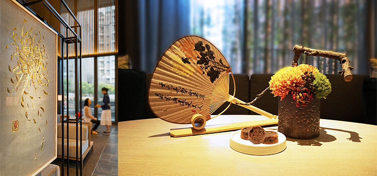 秋天的使者-菊,在大自然中绽放清幽,顯得格外金黃閃耀,下過雨後,金色菊瓣緩緩飄落,呈現浪漫的雨天情懷,晶泉丰旅結合台灣現代刺繡藝術家-黃莉莉,將在酒店大廳呈現菊瓣飛舞的刺繡菊,透過落地窗灑進的陽光,金黃閃耀的菊更加耀眼吸睛。