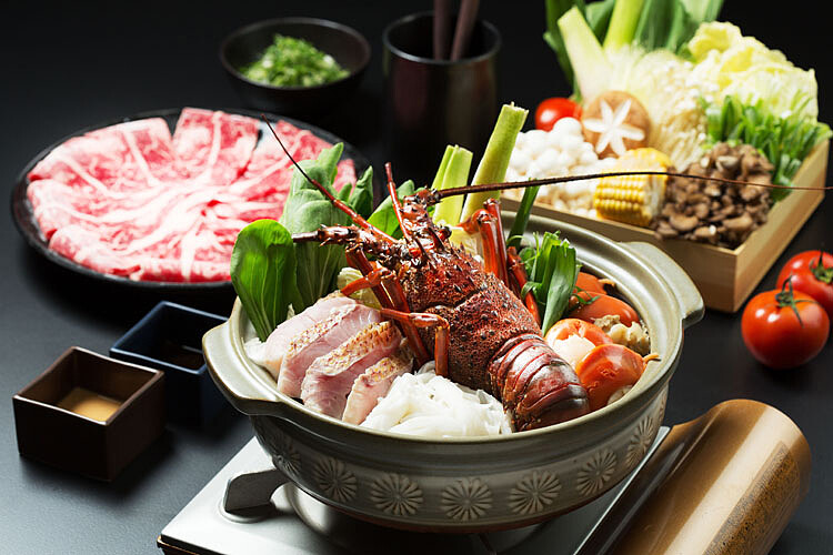 秋天是豐收的時節,正是品嘗肥美海鮮的時候,廣受饕客喜愛的三燔礁溪,延續三燔本家精緻日式烹飪精神,推出豪華海陸套餐,選來自東南亞海域的新鮮龍蝦搭配扇貝、鮮魚、軟絲等時令海產,組合成視覺效果一流的海鮮盛合,加上Prime等級的美國牛肉與鹿兒島黑豬肉等選項,打造多元豐美的海陸雙主餐鍋物料理。