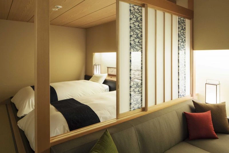 旅館外觀以簡約、摩登的現代為主調,但客房則是揉合傳統與文化的空間,簡約而典雅。和式榻榻米、木製天花板和日式拉門,並鋪設栃木縣產的大谷石地板,讓旅人盡享日本傳統風情。所有客房皆擁有面向森林的露台,,即便什麼也不作,百般聊賴地待在房間裡享受季節和山林之美,也令人心動不已。