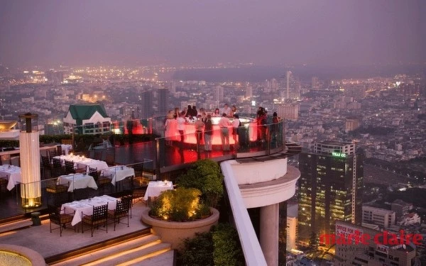 許多人都是透過電影《最後大丈夫2》知道這個位於曼谷的蓮花大酒店上頭設立的天空酒吧,高達約250公尺,只有一個橫架橋與酒店相連,看上去就像是懸在半空中,酒吧周圍牆壁使用透明護欄,一低頭就是映入眼簾的曼谷街道燈光,有點嚇人卻能望盡整片城市的美。