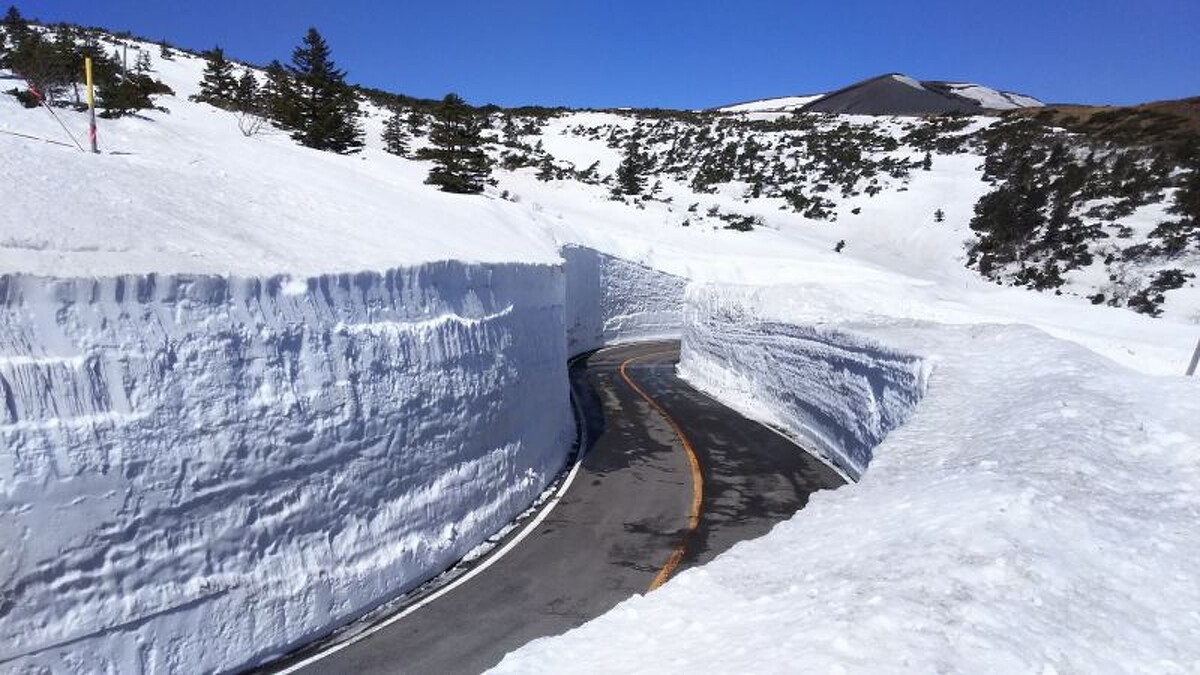 宮城的雪在五月就會逐漸融化,但在此之前,絕對不能錯過盤山公路的雪壁。每年四月這裡更會舉辦雪壁自行車大賽及自行者天堂,遊客可以不用擔心車輛的往來,隨心所欲地漫步或騎著自行車一覽這獨特的雪壁奇景。