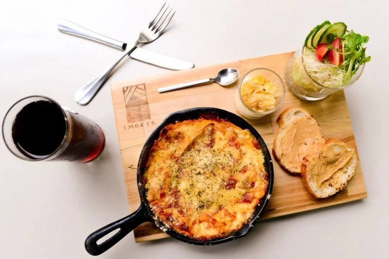 推薦小鐵鍋烘蛋,經過焗烤過的烘蛋再撒上大量的起司粉,實在讓人食指大動,而且還有韓式泡菜口味可選擇,還有法國麵包、優格等副餐,份量超大可以吃得很飽唷!