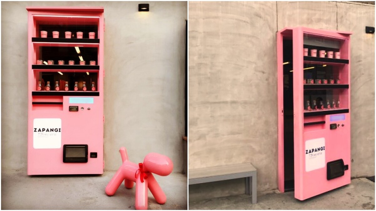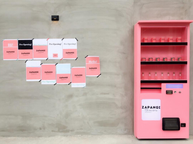 一整片冷灰色的牆壁,突兀的粉色自動販賣機,旁邊有一扇窗戶,想進去卻不知道哪邊是入口,ZAPANGI就因為這樣在網路在大大爆紅。