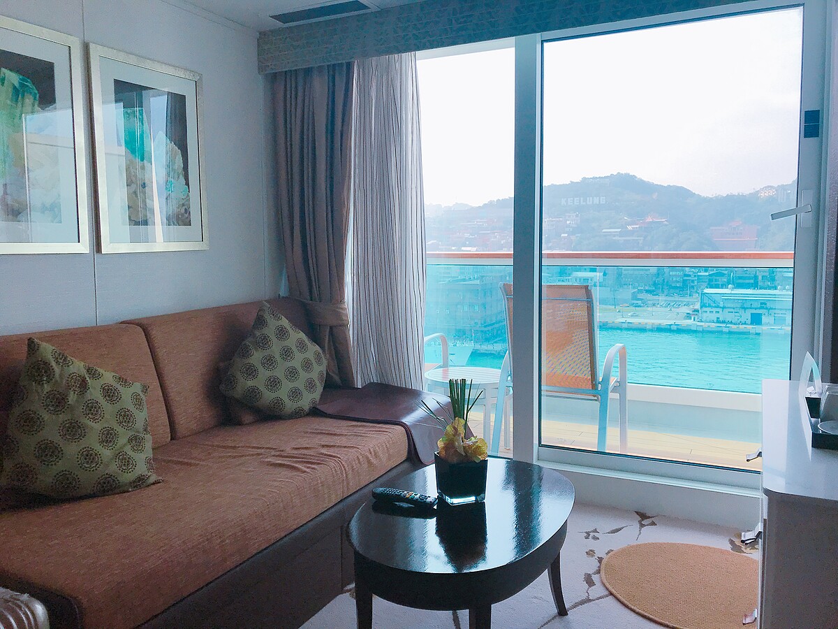 跟著編來住SB豪華全景陽台房,有一大片落地窗可以從早到晚欣賞到海上的美景,配備獨立衛浴淋浴設備、梳妝區、電視機、迷你冰箱、保險箱以及24小時客艙服務。一早起床就能聽見清脆的浪花聲音,走到陽台還有清涼的海風吹來,一望無際的大海搭配美味下午茶絕對是人生一大享受。