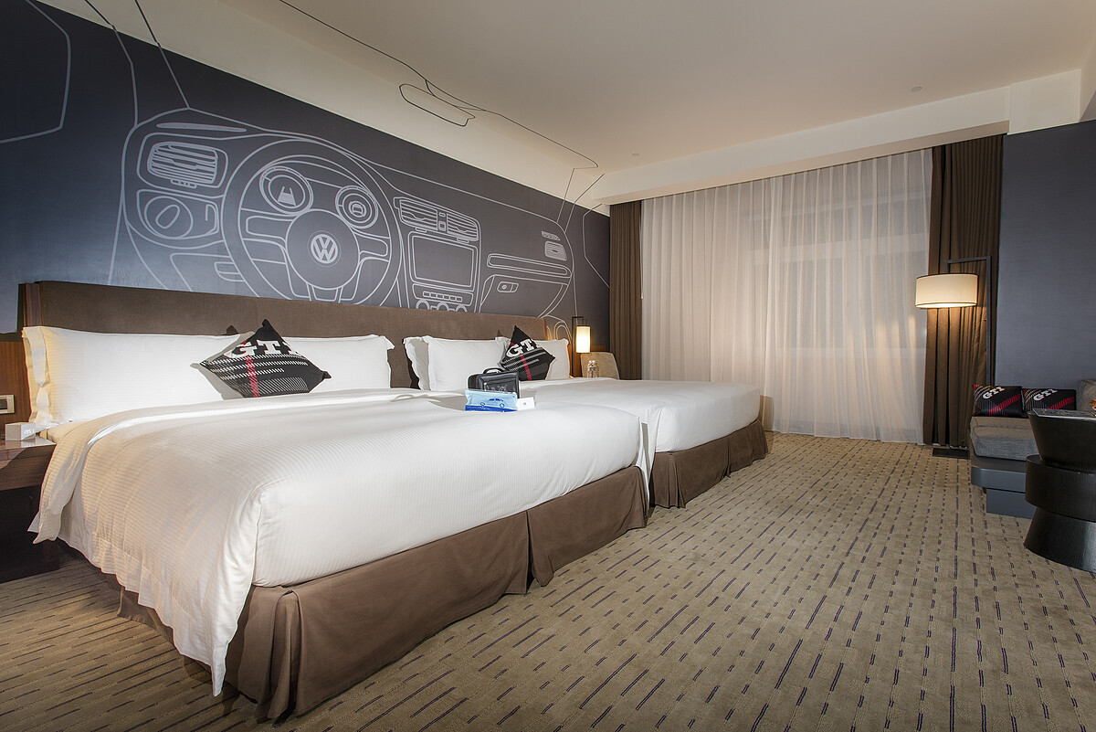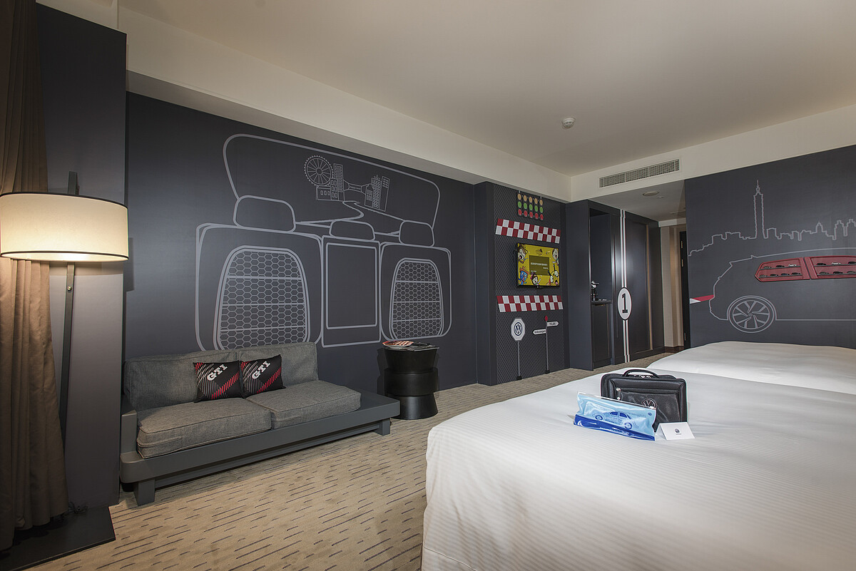 此外,蘭城晶英與Volkswagen特別打造汽車主題房,包含童趣風和GTI性能房兩種風格,以彩繪太空科幻場景和充滿賽車場風格的牆面呈現,絕對是房客與車友的珍貴體驗,平日每房新台幣14,780元起。而作為宜蘭市唯一一家五星級國際渡假親子飯店聞名的蘭城晶英酒店,於2011年設立的《芬朵奇堡》,提供多項遊具設施、滑梯等做為親子互動,還有多台小型電動車與規劃賽車廊道讓孩子們體驗電動車駕車樂趣,為大人小孩打造一間吃喝玩樂全包的高級酒店,盡情享受住房樂趣!