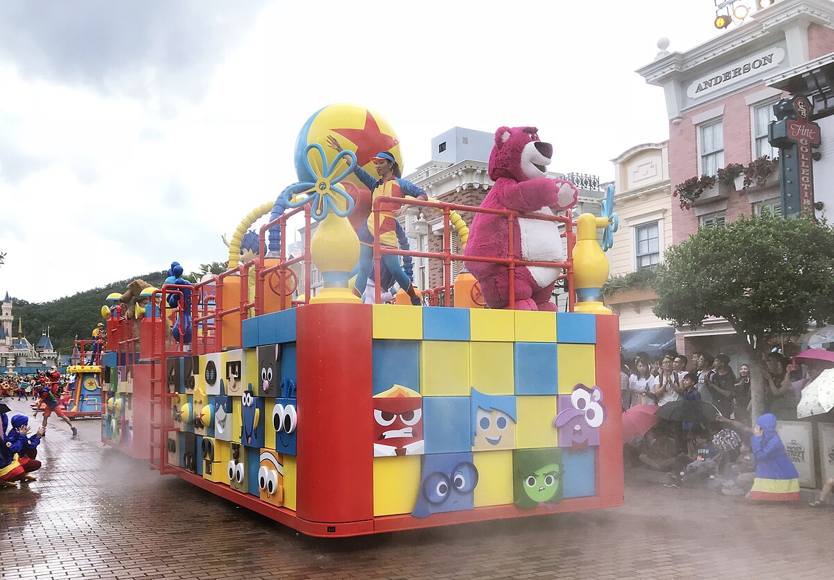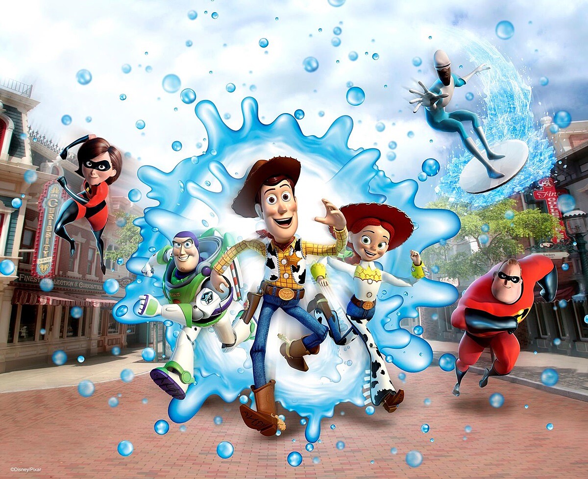 別於過去的遊行活動,今年夏天,在每天下午的遊行時間推出了水花遊行派對,由PIXAR多位主角為主題,像是《玩具總動員》的胡迪、巴斯光年、翠絲、熊抱哥、《腦筋急轉彎》的樂樂與憂憂、《超人特攻隊》的超能家族等,坐上磁浮車與遊行車,用水槍、灑水活動與樂園的群眾互動,感受夏日的玩水氣氛。來到晚上,取消煙火活動,以聲光效果十足的米奇投影盛演投放在美國小鎮大街上,最後還有米奇大人偶驚喜現身,為圓滿的一天畫下精彩句點。