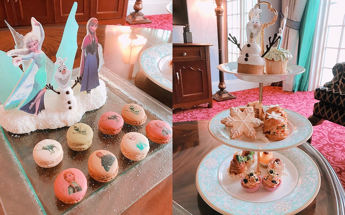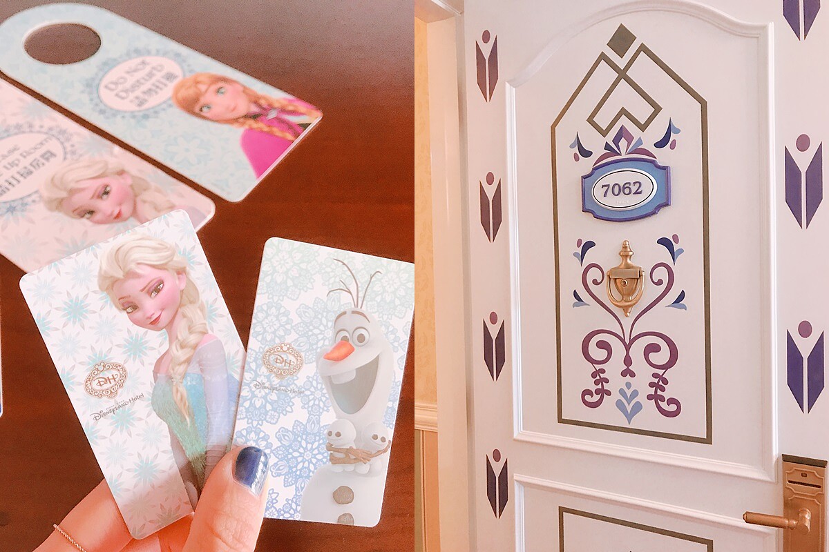 香港迪士尼樂園先前預告即將在2021年推出的《冰雪奇緣》主題園區,還未上場就先造成一股轟動,除了率先推出園區內的主題活動外,這次更搶先帶來了《冰雪奇緣》主題套房!從走進房門開始,可愛的公主房門卡就讓人想收藏,接著就是門板上布置了藍色雪花片,一踏入房間內,一股冰雪氣息迎面而來,房內舉凡櫥櫃、牆壁與浴室都布置成白雪皚皚的雪花與藍色雪地,客廳還放有一座雪橇沙發椅,彷彿乘坐在上頭朝著冰宮城堡前進,桌上更擺滿了《冰雪奇緣》下午茶,馬卡龍、蛋糕、餅乾與鹹食都有,就像公主一般沉浸在放鬆高級的下午時光。
