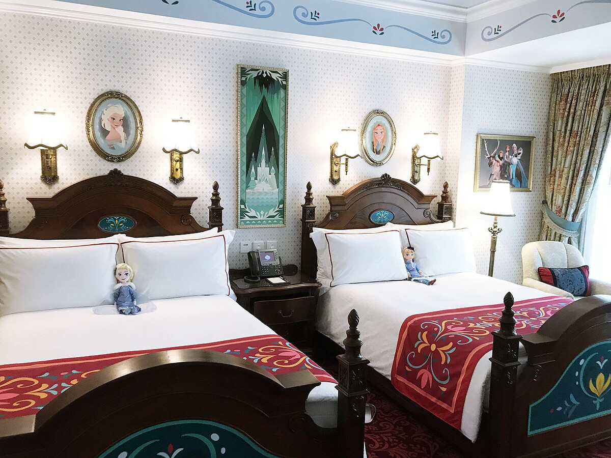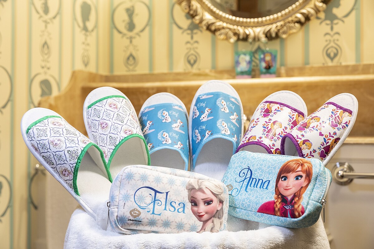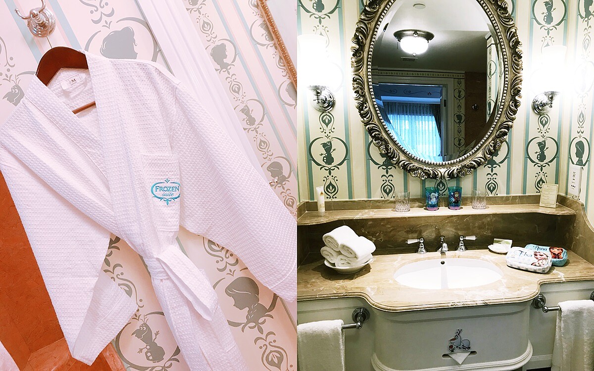 房裡的每個角落精心設計了Elsa、Anna公主和雪寶的裝置與玩偶,一頭是客廳休息空間、另一頭還有大隻雪寶、玩具與故事書可以玩樂,完全讓小朋友忍不住待在房內一整天。來到臥房房間,兩張雙人大床的牆面上掛了Elsa與Anna公主肖像,還有兩隻玩偶坐在床邊等著陪你一起入睡,浴室的牆壁也掛上白雪壁紙、提供《冰雪奇緣》個人用品包、牙刷杯組與浴袍,讓自己當個幾天小公主吧!《冰雪奇緣》主題套房即日起於香港迪士尼樂園官網開放預訂,每晚港幣7,000元起。