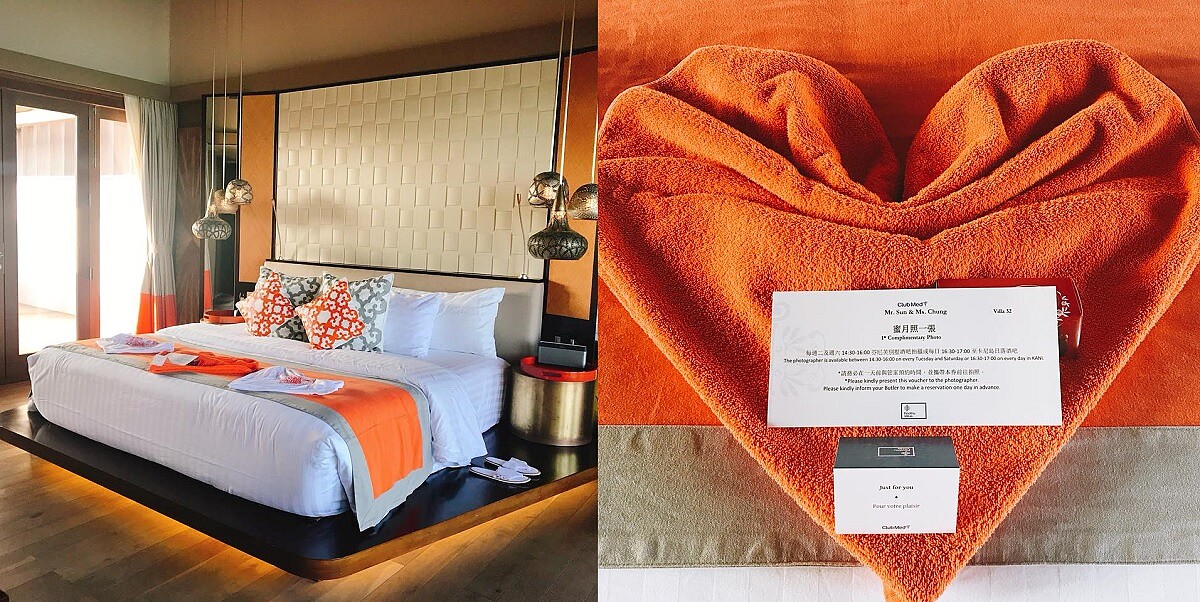 說真的,欣怡原本想說派對要狂歡的,但笑稱自己是個吃貨,一看到食物後、完全都忘光了哈哈!完全沈浸在吃吃吃!(是有多餓⋯)還沒來的及等到他們的傳統甩毛巾、村長帶領團隊跟大家舉杯敬酒,以及大家最愛的暢飲狂歡直到午夜⋯老公早已把她帶走⋯原來老公說他不想錯過跟欣怡在一起的蜜月時光!(也太甜蜜)
