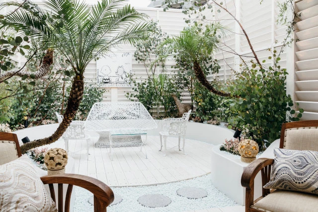 61號的大自然風格,簡約的白色系裝潢與浴室,都散發出格外現代感的風貌,望向窗外的房間陽台,打造成植物獵人Seiji Nishihata先生的天空植物園,美到不行。
