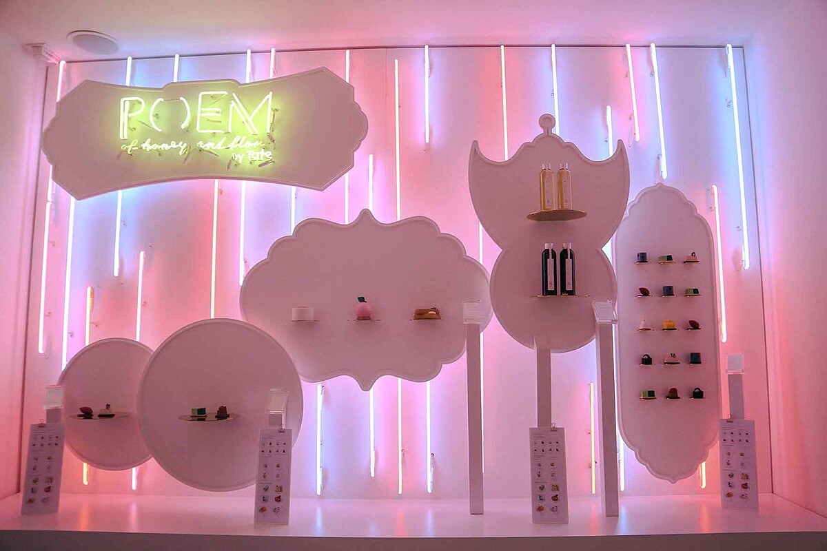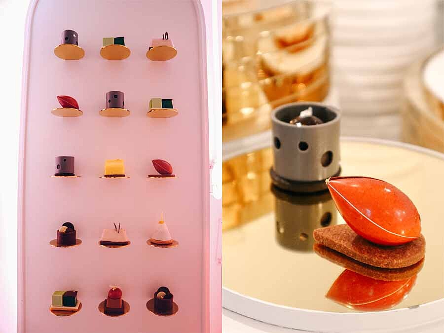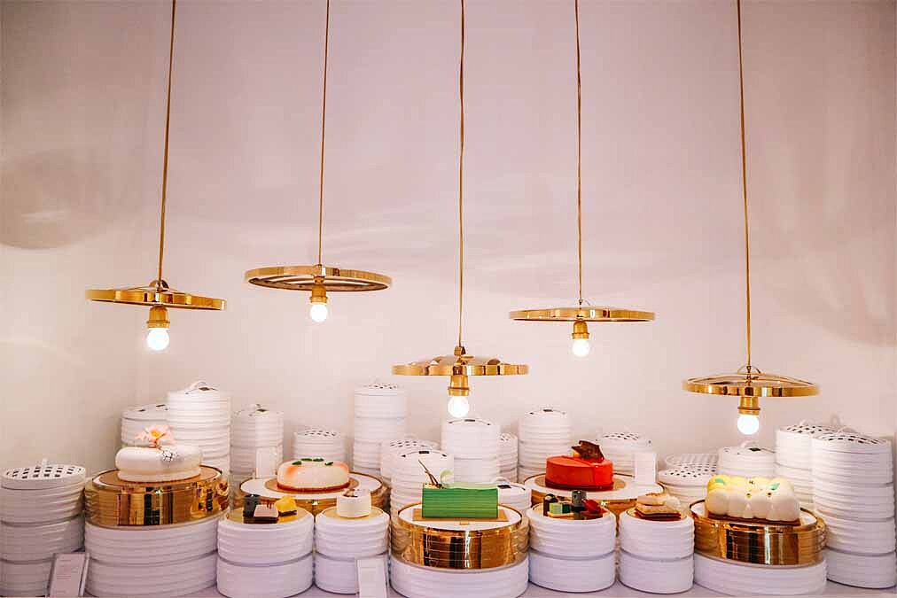 驚艷的大師之作,在上環的「POEM Patisserie」更是美絕的靚爆全港,在米其林星級大廚劉韻棋Vicky Lau魔幻操刀下,顛覆傳統的將鐵觀音、紅棗、陳皮、楊枝甘露等中式食材和糖水元素概念,用法式糕點技巧搖身一變成口味創新、造型別緻如畫作的蛋糕,一道道在蒸籠上呈現、在霓虹燈打燈下,像是在藝廊茶樓品嚐精雕細琢的藝術品,瞬間粉紅泡泡優雅蜜入心。