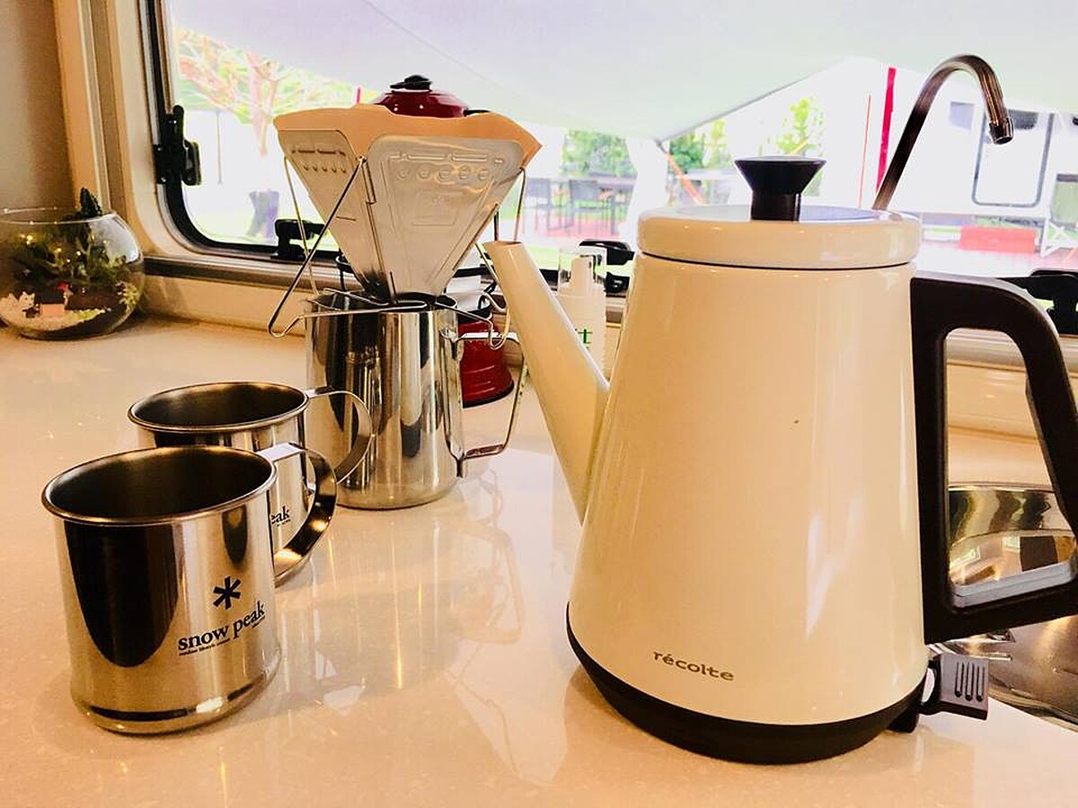 感受野營,館方還準備了野營風格餐具Snowpeak手沖鋼杯與鋼製餐盤、Stanley保溫瓶、並有一組簡便的手沖咖啡組。都是入住客房吃不到用不到的獨家露營特選。營車中備有內線電話可隨時聯繫友善的管家與服務人員,同樣會享有星級飯店優雅且貼心入裡的客房級服務。
