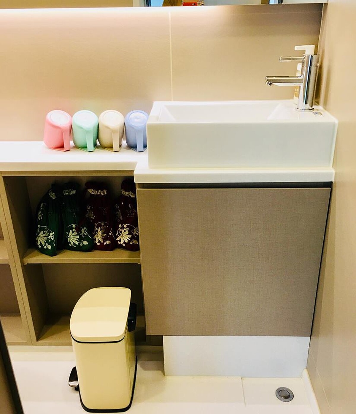 打開露營車會超驚喜。內裝竟然有獨立衛浴空間、分離盥洗台、冷氣空調、小冰箱、衣櫃等。不用擔心玩得滿身汗,也不用像露營區趕著熱水供應時間或者要排隊,真心誠意的沒有壓力,隨時都能獨享盥洗時間,吹個冷氣重新整裝。