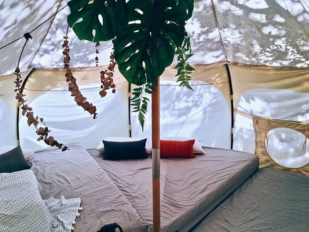 酒足飯飽後,你可以選擇來趟森林漫步,又或者稍作梳洗、踏進好夢里為你準備的精緻帳篷內。好夢里的六座帳篷不但外觀設計各自巧妙,而且無論何種,內部皆備有涼爽的空調與風扇,以及充滿設計感的家居飾品;而那寬敞柔軟的床墊,保證讓你躺上去就不想離開,陪伴每位入住里民酣甜入睡。