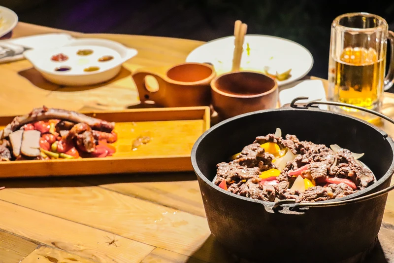 等大家紛紛抵達,最受期待的「地心巨人饗宴」也即將開始。在浪漫月光之下,里民一同圍坐在巨人餐桌前,用一道道可口美味喚醒味蕾,除了有新鮮蔬菜,還有富在地特色的醬料可沾取。隨後各式主菜也陸續上桌,南瓜米粉、爽口檸檬魚以及熱氣蒸騰的鮮嫩牛肉、現烤玉米地瓜等菜餚,每一道都讓人齒頰留香。最後,再來一碗熱騰騰西瓜湯,一口喝下,那帶著「酸甘甜」滋味的湯頭,就算已經吃飽,還是忍不住一碗接一碗。