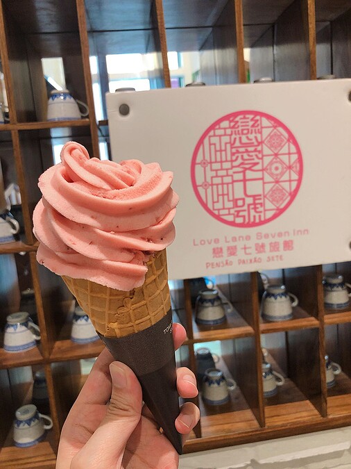 最棒的是窗外就可以看到澳門著名景點大三巴,View相當好,走過去也不過5分鐘,另外民宿內還有提供冰淇淋,原料都是日本空運過來,20多種口味從草莓、葡萄到哈密瓜都有,幸運的人還可以吃到限定南瓜口味。