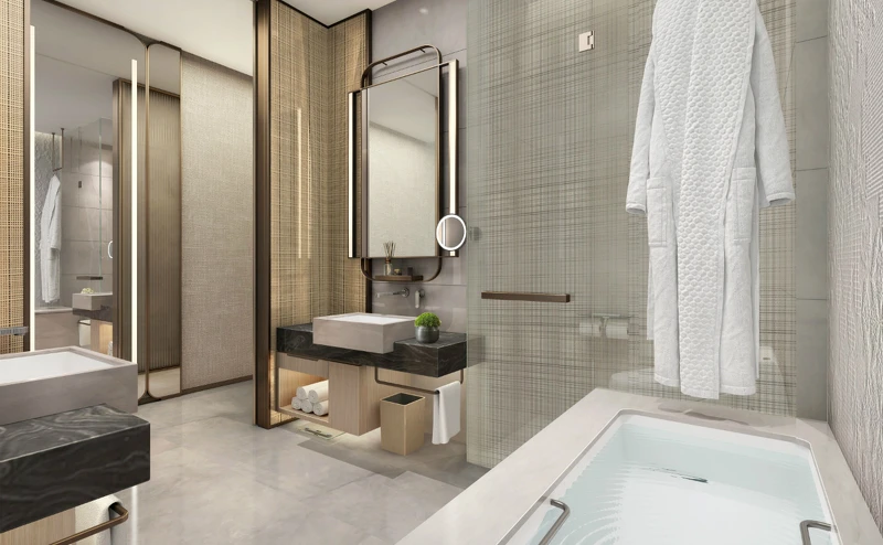 讓旅客在意的住房細節,四百間客房,每房都配備有雙洗手槽、乾濕分離和泡澡缸、以及免治馬桶。位於26-31樓層的行政客房,更能享用專屬行政酒廊。