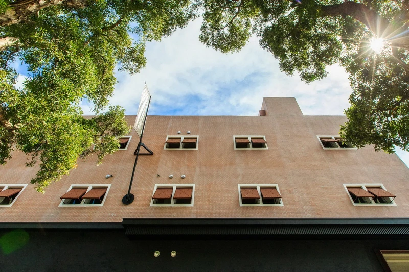 緊鄰華山文創園區僅隔金山北路。「天成文旅-華山町」坐落於忠孝東路上,無梁板建築的特色是二次世界戰後流行的美式建築,後來成為第一銀行興建後作為台北倉庫使用。
