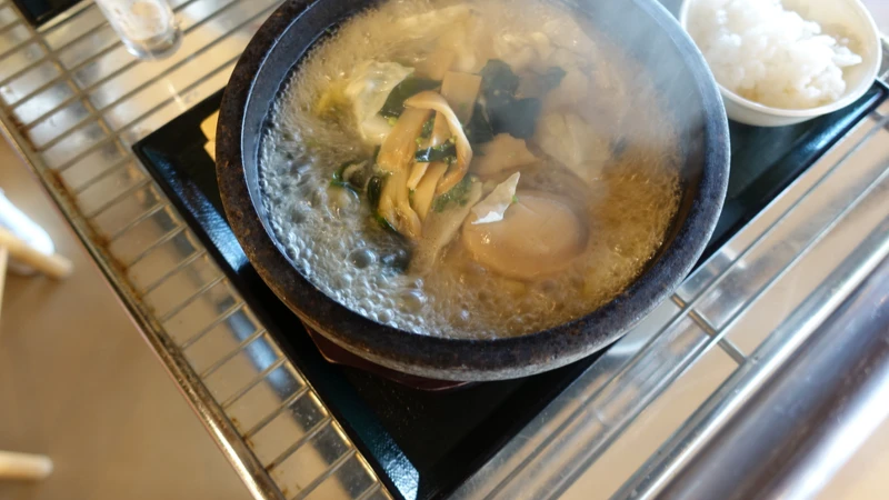 這裡的餐飲也相當特別,在值得一提的便是每日限量的「特製鍋燒拉麵」,服務員會將各式材料推到客人面前,並將鍋子燒熱後,直接將材料放進鍋中,一下「涮」地一聲,白煙四起搭配鍋中滾燙的湯汁,充滿視覺效果。而坐在餐廳內向落地窗外望去,一整片遼闊草坪,遠處又有立山黑部,真想在這裡發呆一個下午。