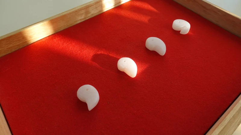 還提供「繩文時代」人們裝飾品「勾玉」的製作,將「高蝋石」用粗細砂紙用手打磨,漸漸磨成水滴帶尾的形狀,一旁當地的孩子們告訴我們這並不好操作,使了吃奶的力氣在水盆裡磨阿磨,終於出來的成品不差心底還有些欣慰,戴上親手製作的「勾玉」,夕陽正好灑落在一大片稻田中,這一日在滿載而歸中結束。